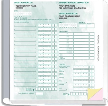 We offer the convenience of pre-printed deposit books, self-inking cheque stamps that can be customized for use as an address stamp or cheque deposit stamp, single and double sized cheque binders for manual cheques,and envelopes for laser printer cheques. .