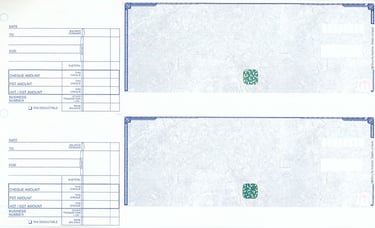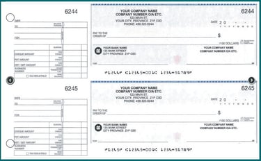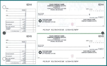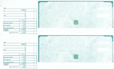 A two-per-page hologram manual cheque lets you replicate all the information from your company cheques on the attached stub. So, when the cheque is easily removed, the stub remains in place, making it easy for you to locate all the details, including the manual cheque date, number, amount, and the place or person to whom it was issued.