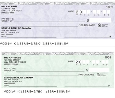 Our personal cheques are the most popular range of cheques we provide. All our personal cheques use state-of-art technology that meet the specifications of the Canadian Payment Association CPA Standard